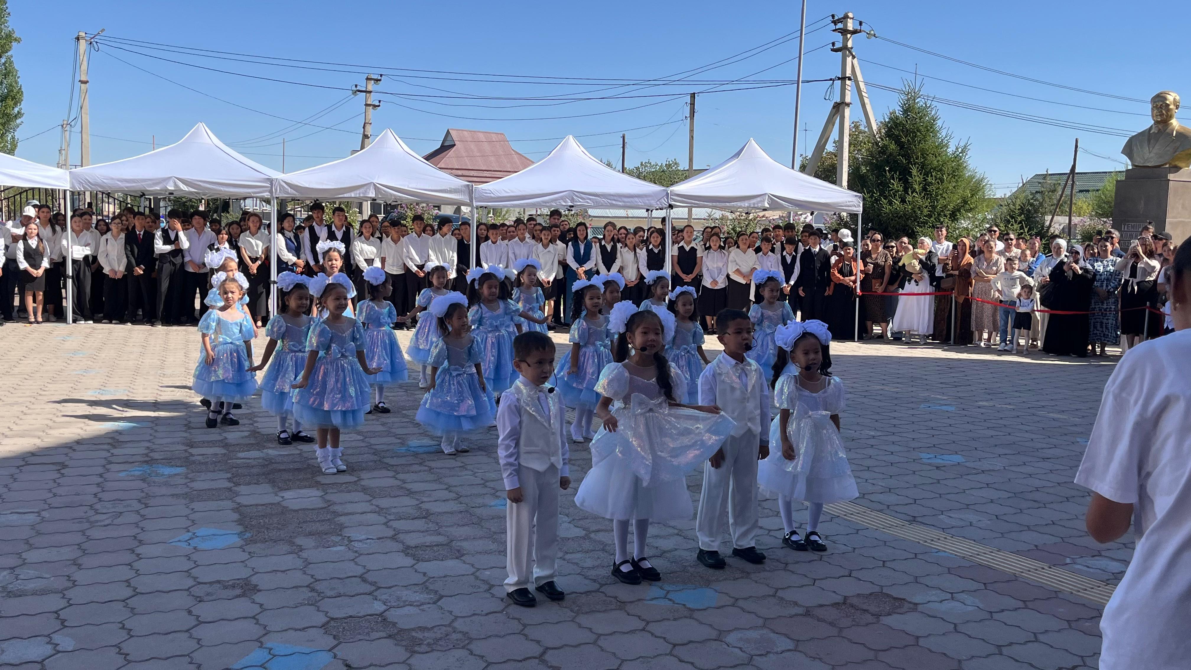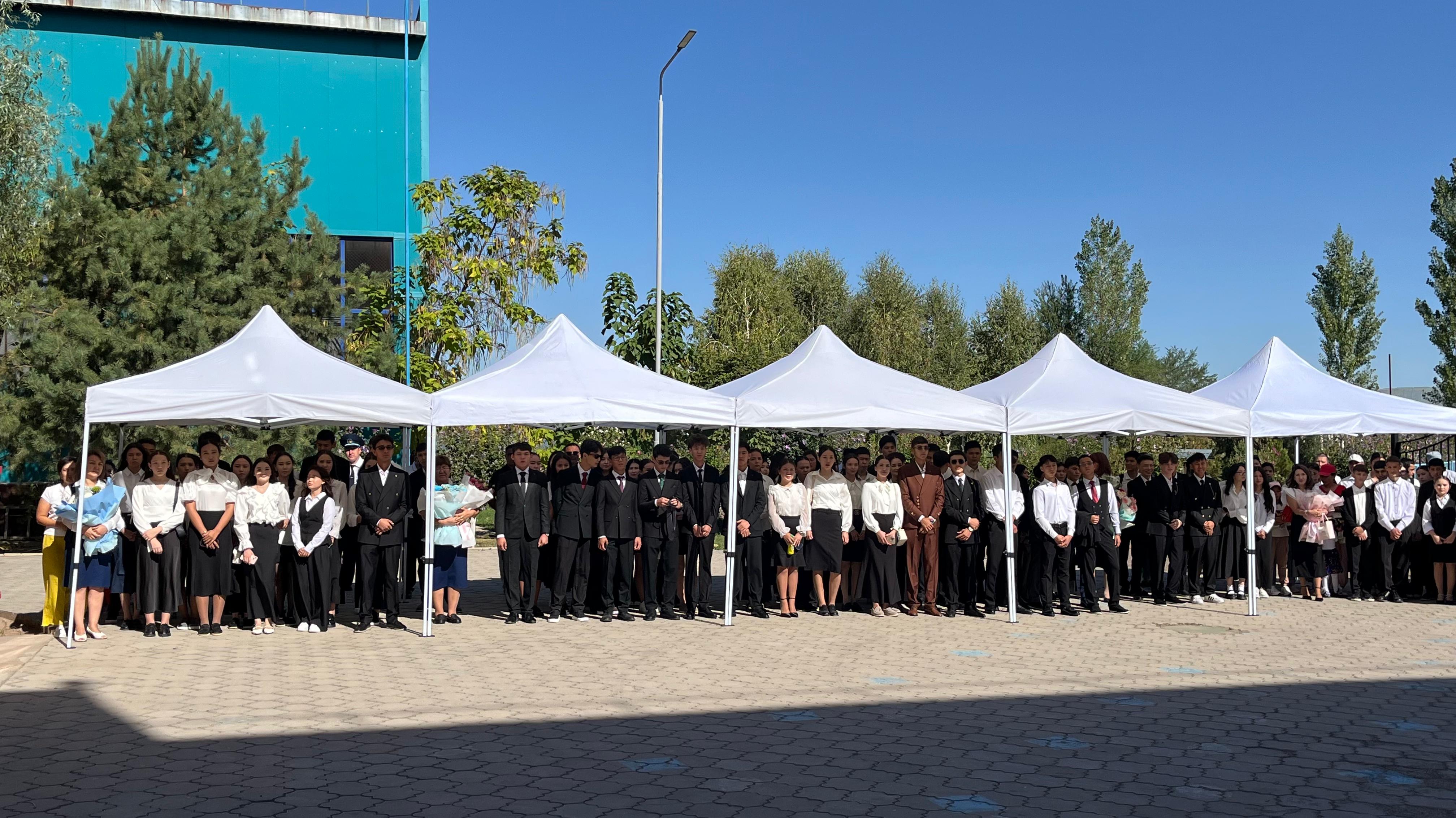 Шараға 1-сыныпқа қадам басқан бүлдіршіндер, сондай-ақ 9 және 11-сынып оқушылары қатысты. Оқушылар мен ата-аналарды жаңа оқу жылымен мектеп директоры мен ұстаздар құттықтап, ізгі тілектерін жеткізді.