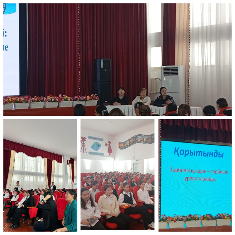 Кездесу барысында “Қыз Жібек” қыздар клубының жетекшісі Н. Исыраилова және мектеп психологы Э. Ахметова мазмұнды баяндамалар оқып, қыз балалар тәрбиесі, мінез-құлық мәдениеті, ұлттық құндылықтарды сақтау және жасөспірімдердің психологиялық қауіпсіздігі туралы маңызды ақпараттармен бөлісті.