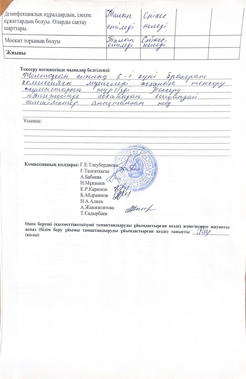 Тамақтану сапасына мониторинг жүргізу қортындысы бойынша » СШГ №39 имени Темирбека Кожакеева