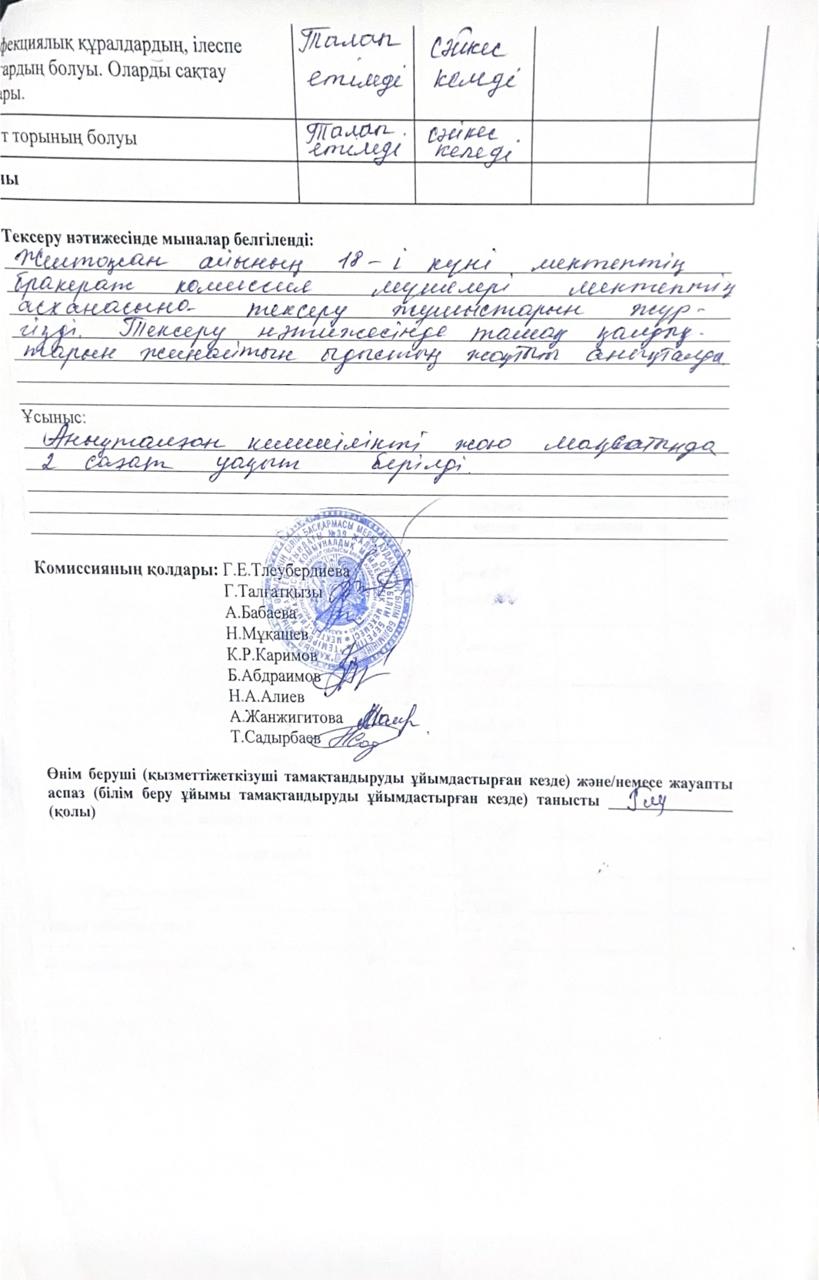 Тамақтану сапасына мониторинг жүргізу қортындысы бойынша. » СШГ №39 имени Темирбека Кожакеева